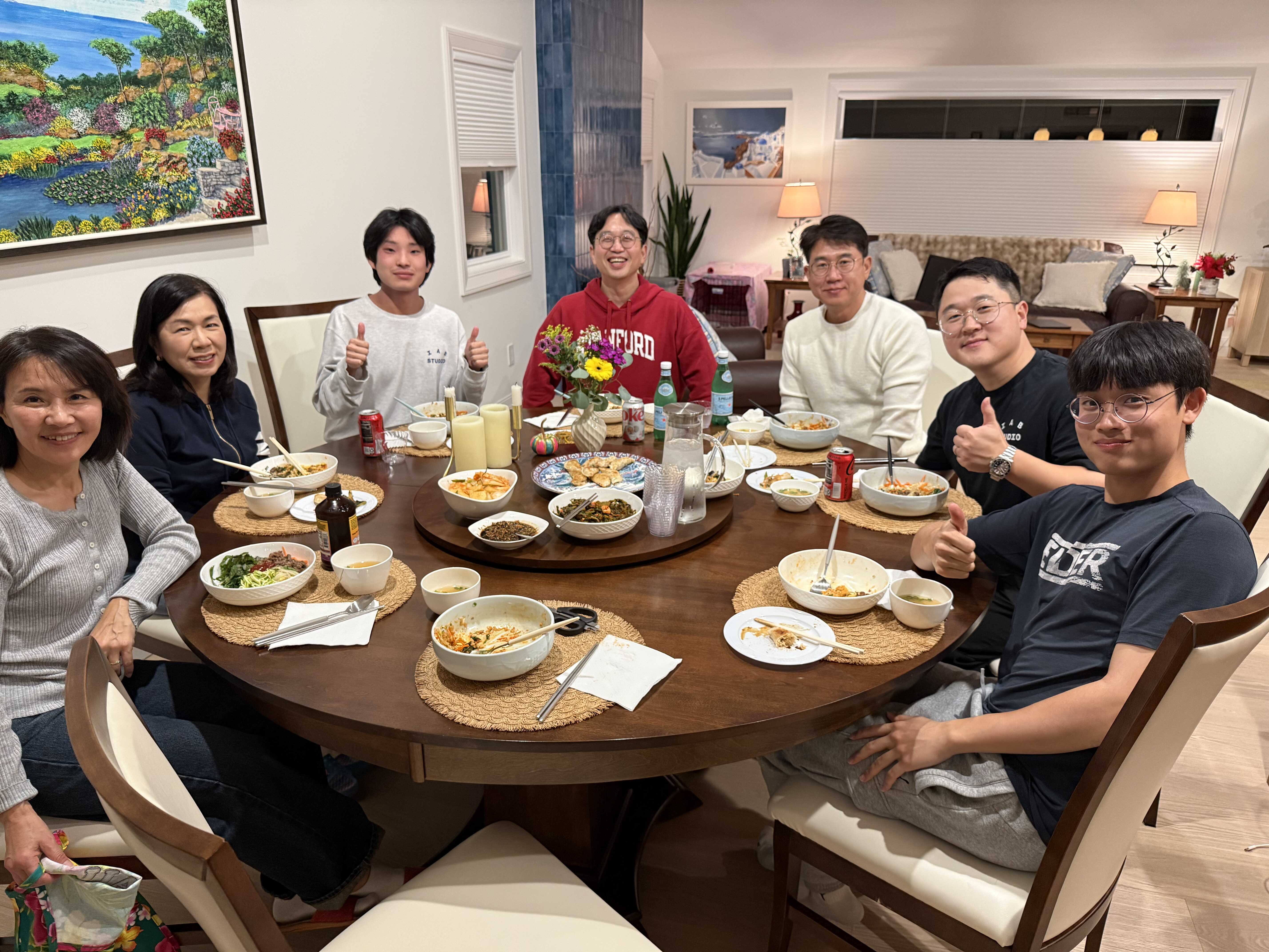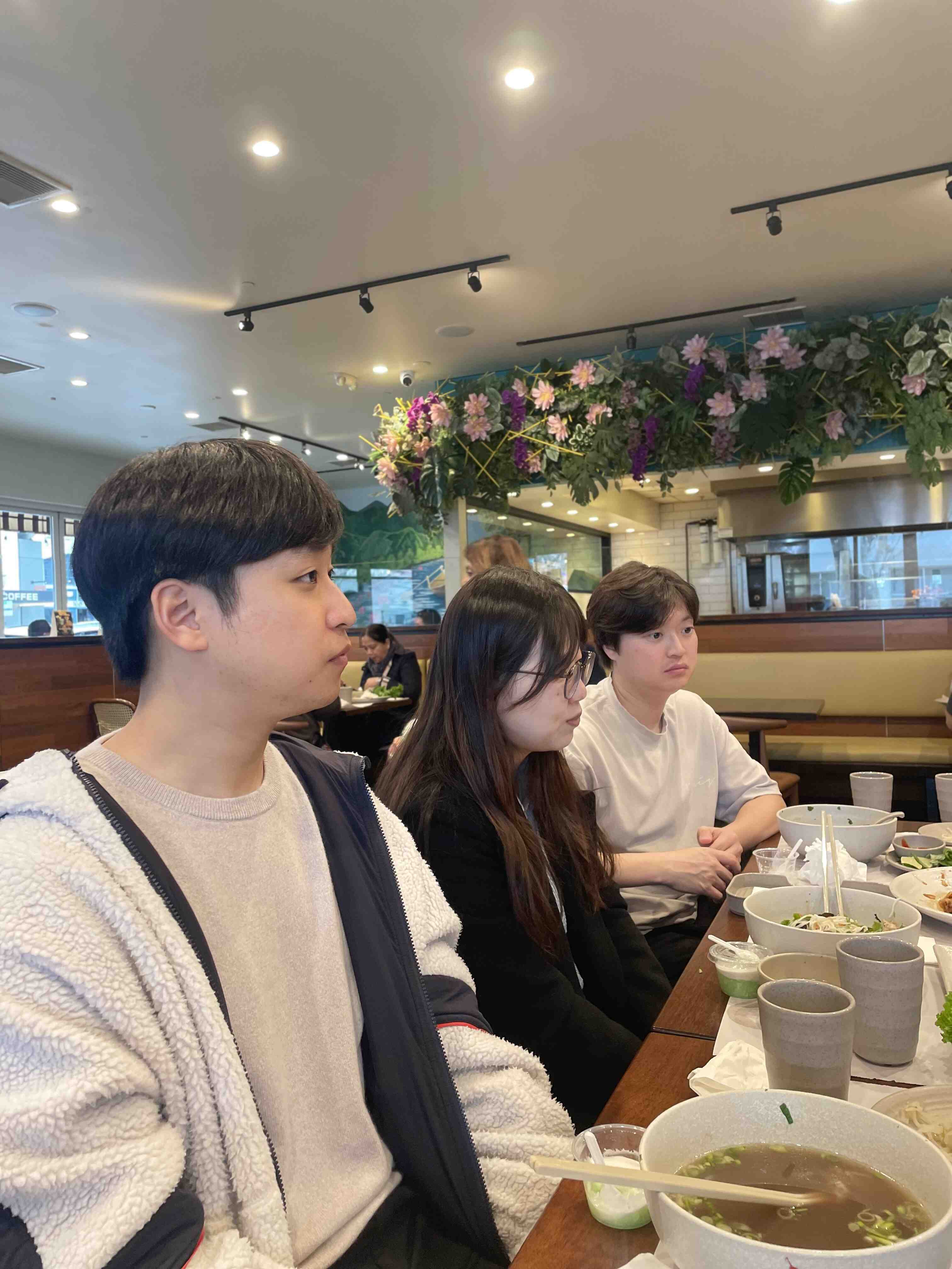Early morning breakfast in Seoul; June Hee, Chanik, and Sunghee.