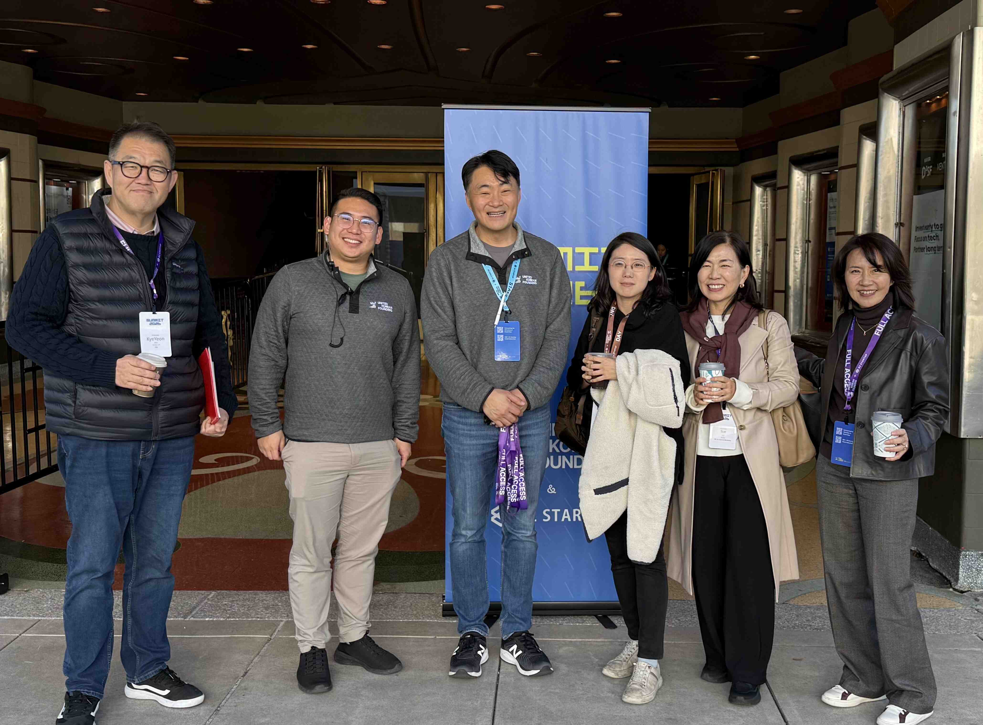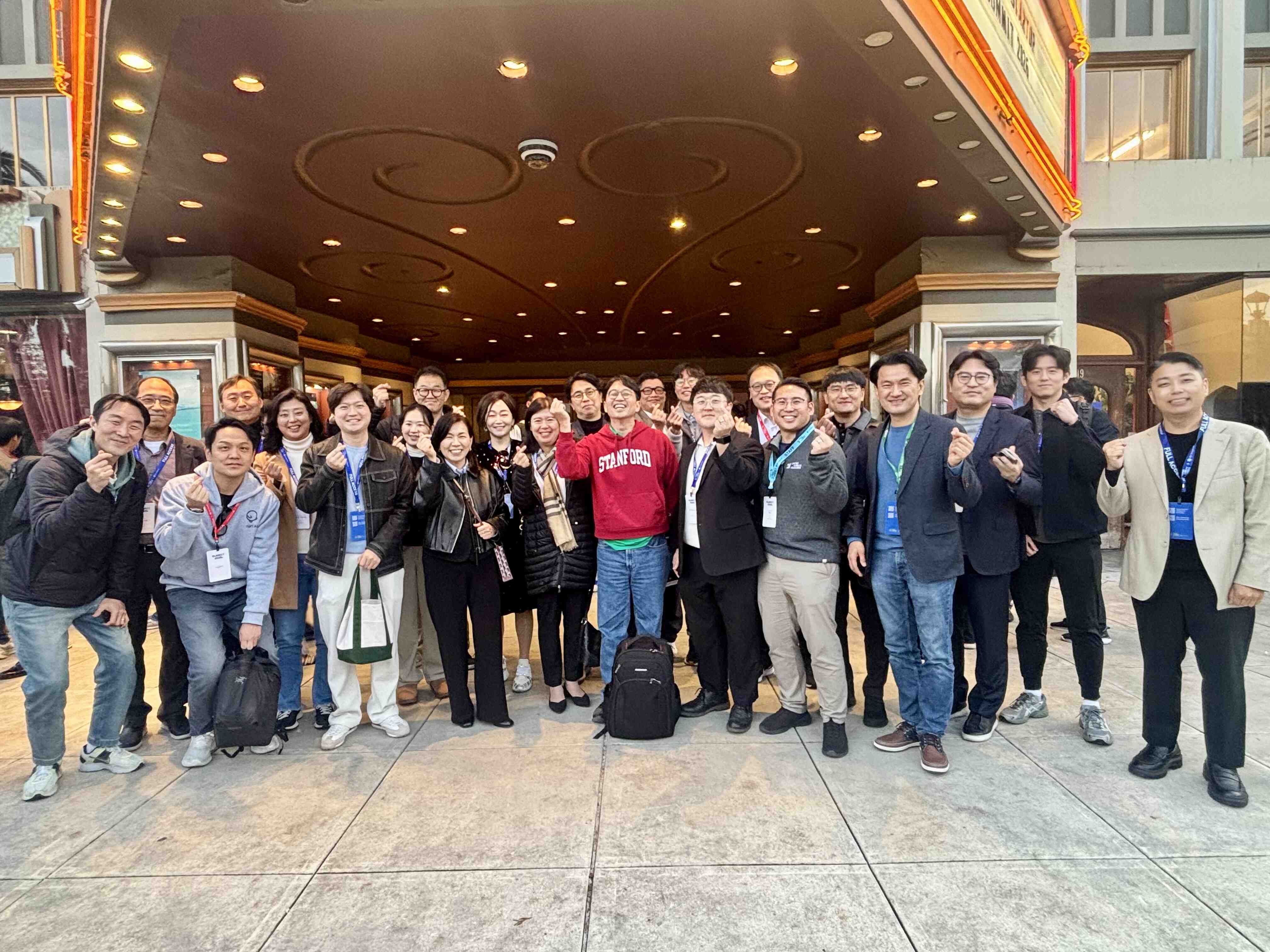 Below – Chanik, Sunghee, Prof. JongHyuk Kim, Jeff, Gordon, Siyeon, and Don (from left) @ K-BioX ABDD Summit 2026 @ Stanford